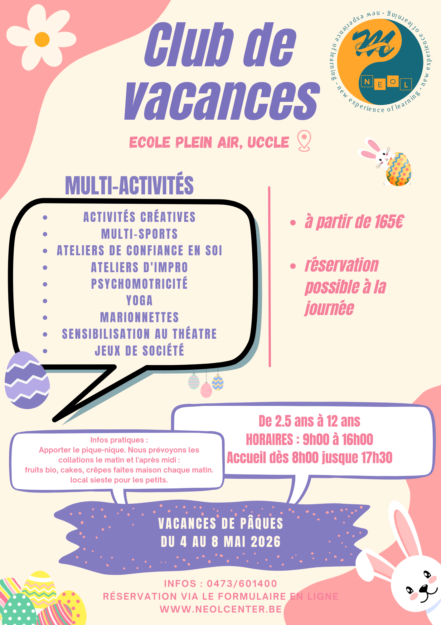 Au programme : des activités variées, ludiques et créatives pour permettre à vos enfants de profiter pleinement des vacances dans une ambiance printanière et conviviale.
